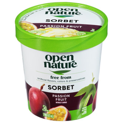 What does Open Nature serve up in terms of sorbet? The better question is what doesn't it have? We're talking mango, lemon, and peach for starters. Open Nature drops a very generous sampling of berry fruits when it comes to its sorbet line serving up pints of strawberry, raspberry, blueberry, and açaí berry.