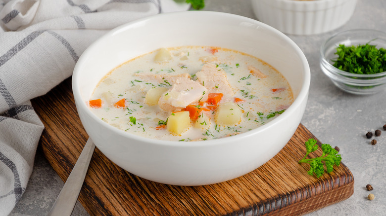 Chowder may be the best way to use salmon in a soup, but it's certainly not the only one. There's a reason Mediterranean countries have been using fish in everything they can for years. It's easy to come by, healthy, and complements almost every other flavor.