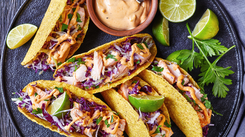 Who says your fish tacos have to have fried fillings? Use canned salmon instead to fill your taco shells for a hearty and healthy meal. Or make them into burritos if you have a bigger appetite. Using salmon in your tacos is as simple as tossing it in lemon or lime juice and some cilantro and piling it onto soft or hard taco shells, depending on your preferences. You don't need anything else, but if you want to add more fillings, consider shredded lettuce, fresh salsa, or pico de gallo.