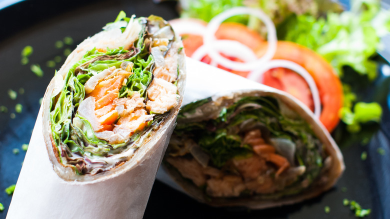 Put your lettuce cups on plates and fill with your seasoned salmon. Top with avocado and onion. You can drizzle lemon or lime juice over your lettuce cups before serving if you'd like. If you're looking for something a bit more substantial, consider using tortillas or sandwich wraps. Flavored options of these, like spinach or tomato, make an excellent complement to your salmon. Wrap it up with spinach or field greens, tomatoes, and onions.