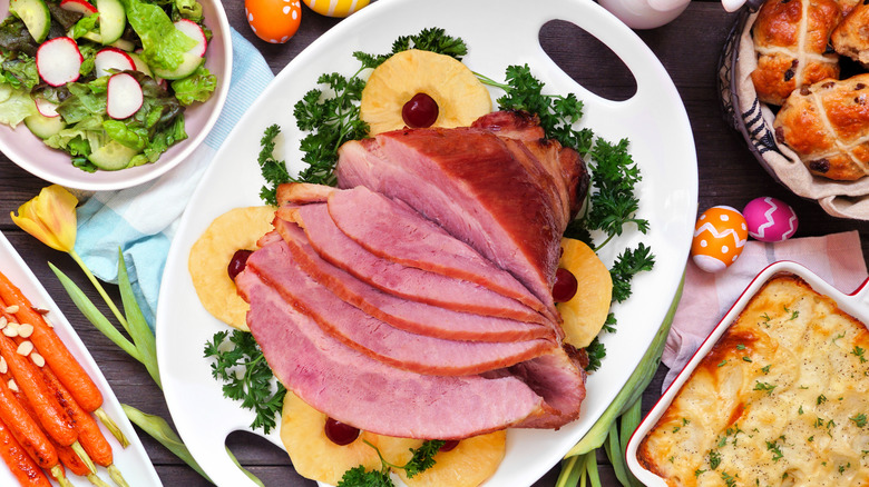 As we've established, pineapple makes an excellent marinade for meat. Pineapple contains the enzyme bromelain, which acts as a meat tenderizer, breaking down the meat to make it soft and supple. In addition to pineapple, the dish often includes soy sauce as an ingredient, which helps to round out the flavor. Hamonado can be enjoyed anytime but is also found as part of Noche Buena festivities. Celebrating Noche Buena, aka Christmas Eve, is a long-standing tradition in the Philippines due to Spanish colonization. Ham is not an unusual choice for Christmas celebrations in many places around the world, but in the Philippines, ham dishes often incorporate pineapples.