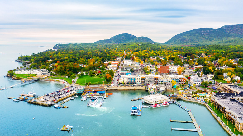 In 2011, Red Lobster announced a massive remodel of its locations based on extensive research and customer feedback. The inspiration for this remodel was the quaint seaside village of Bar Harbor, Maine. Distinct features integrated into the exterior design included a stone tower, Adirondack chairs, ship lanterns, and window signage corresponding to the types of seafood dishes served. Interior features continued with the nautical theme, utilizing warm colors, wood paneling, signal flags, appropriately oceanic artwork, and softer lighting.