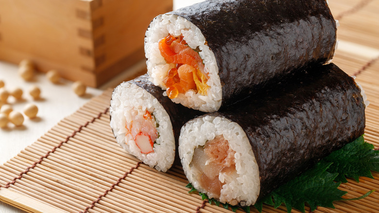 If you're a sushi fan, you've probably watched a chef gently and firmly use a bamboo mat to roll up the seaweed, rice, and fillings that make up any combination of maki rolls. Making sure the roll is tight and even is key to making sure the sushi stays together when cut — and when eaten. But not everyone wants to buy their own sushi mat, especially if they don't plan to make it often or are operating with a small kitchen space.