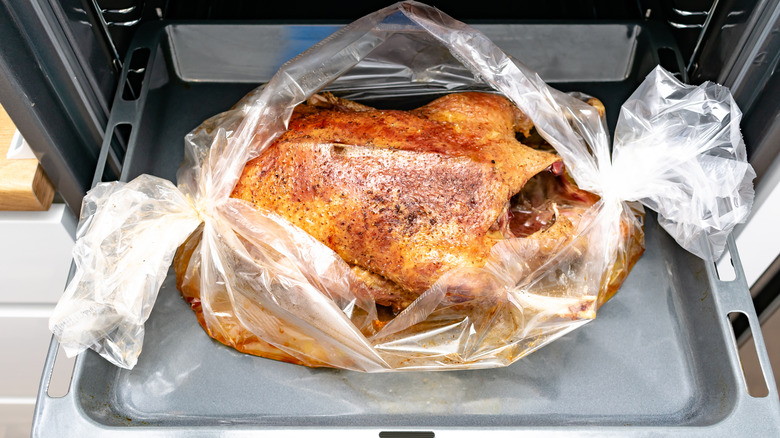 An alternative to wrapping meats going in the oven is to use an oven bag. These are also made of plastic, but a much heavier variety that withstands temperature better and won't melt or leach chemicals into your food. Even if you're confident that your plastic wrap won't melt in the oven, and you've prepared your wrap and covered it in aluminum foil as directed on cooking shows, it still may be best to avoid using it in the oven. Besides carcinogenic chemicals, there is also the risk of ingesting endocrine-disrupting chemicals which disrupt hormonal routines, per Environmental Health News).