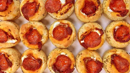 In September 2015, Italian-born Chef Andrea Meggiato asked his future wife, Michelle Jimenez, to make pizza with him on their first date in New York City. As their relationship blossomed, so did Meggiato's passion for the culinary arts. Jimenez inspired him to pursue food full-time, and The Pizza Cupcake was born in January 2018. The cupcake-shaped snack features a flaky crust made from a combination of brioche dough and sourdough, surrounding tomato sauce and mozzarella cheese.