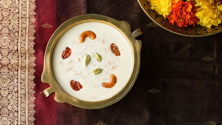 Rice pudding is an easy dessert, enjoyed in different ways all across the world. Kheer is the Indian version of this dish, distinctive and packed with sumptuous flavors. It's a slow-cooked dish made with rice, milk, and sugar, though different versions can be made with cracked wheat, tapioca, or even vermicelli. Complementing the fragrance of rice, kheer is usually flavored with a variety of other things, including any combination of cardamom, pistachios, cashews, and raisins. Additionally, it's often fragranced with ingredients like saffron, clove, rose, or kewra. Decadently aromatic kheer is frequently served in India at Hindu and Muslim festivals alike.