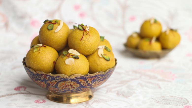Small balls of sweet, fragrant goodness, ladoos are a beloved Indian sweet enjoyed all across South Asia. They often have a soft, slightly powdery texture, but this can vary as much as the ingredients in ladoos. They can be made with semolina, sesame, peanut, and jaggery, among other ingredients. In fact, they're possibly the most ubiquitous sweet in India, with plates of them served at virtually every kind of ceremony and festival, and with every part of India having its own distinctive version. Part of the reason for this is that these sweets have an impressively long history. Ladoos may well be the oldest type of mithai, dating back to the ancient Harappan civilization 4,000 years ago.