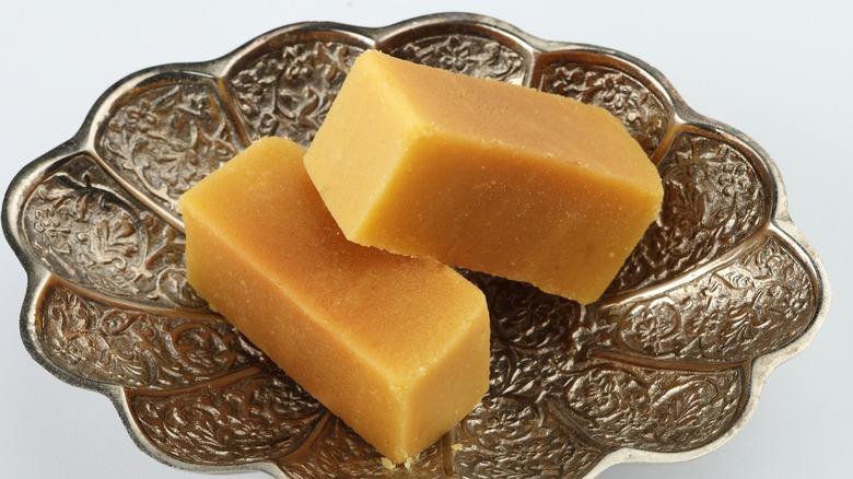 Mysore pak is a distinctly South Indian dish, popularly enjoyed at weddings and baby showers. Dense and buttery, it's often flavored with ingredients like rose and honey. Well-made Mysore pak will have the softness of a good fudge and will quite literally melt in your mouth. There are a couple of different versions of this sweet, too. The traditional Mysore pak is harder and more porous, but a softer version has proven to be far more popular and is now enjoyed across India.