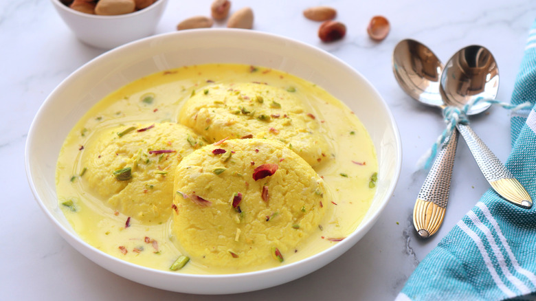 Like many of the other types of mithai, rasgullas are quite easy to make at home with a little practice. At their most basic, the sweets themselves are essentially just made from milk curds, and the syrup they're served in is usually made with white sugar and flavored with rose water (and occasionally a little saffron). Regional recipes vary a little, with some calling for fresh milk to be curdled with lemon juice to make the chenna, and some involving yeast to expand and give the finished rasgullas a softer, more spongy mouthfeel. Whichever recipe you choose to follow, these soft, slightly crumbly sweets should have an irresistible juicy texture when you bite into them.