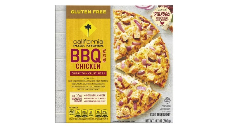California Pizza Kitchen's gluten-free pizzas are available at Walmart and Target, with prices just under $10, which is pretty good, given how expensive gluten-free frozen pizzas can get. The brand uses a cauliflower crust and does it better than most. The cheese is artisan and melts like a dream, while the sauce isn't too thick or overpowering with spice. On top of that, the meat is juicy and cut perfectly. You can get California Pizza Kitchen's gluten-free pizza in two flavors: BBQ recipe chicken and margherita.