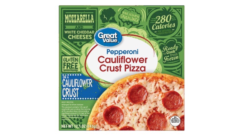If you're on a budget and content with a cauliflower crust pizza that won't electrify your tastebuds, Great Value's gluten-free pizza is a solid option. There are three flavors available, including pepperoni, three cheese, and margherita. However, if your wallet is flexible, there are other pizzas available, even at Walmart. The exclusivity of Great Value only being sold at Walmart locations also brings it down in the ranking.