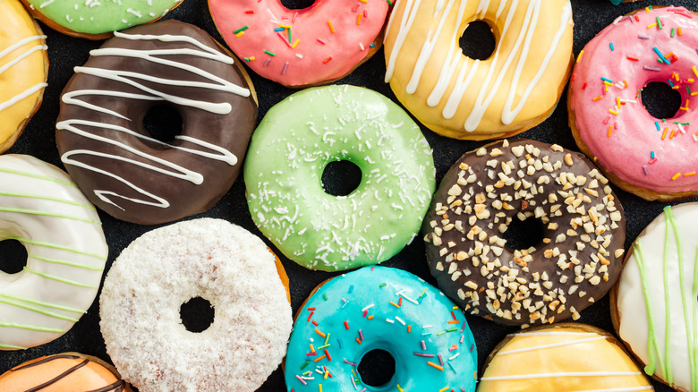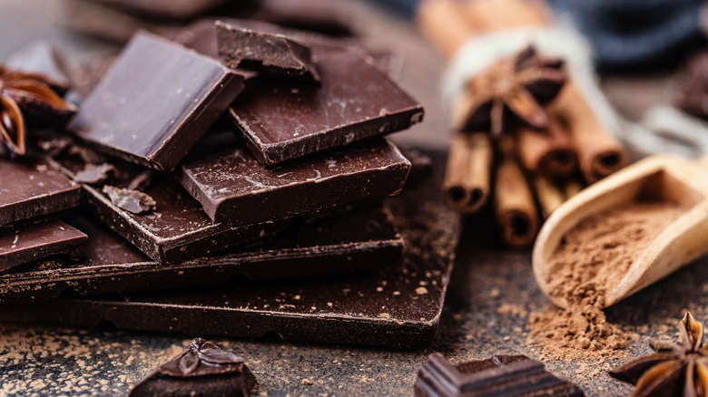 Dark chocolate and the foods that feature it get their distinct flavor profiles from cocoa solids. While it depends on the specific brand and preparation, the cocoa solid content of dark chocolate ranges from 35% to 100%, and higher percentages mean a more bitter taste. Milk chocolate has less than 35% cocoa solids thanks to the addition of milk solids, cream, and sugar, which is why it has a sweeter flavor profile. Of course, Dunkin' Thailand isn't the only country to offer surprising donut flavors, as there's a whole world of ingredients out there just waiting to be sampled.