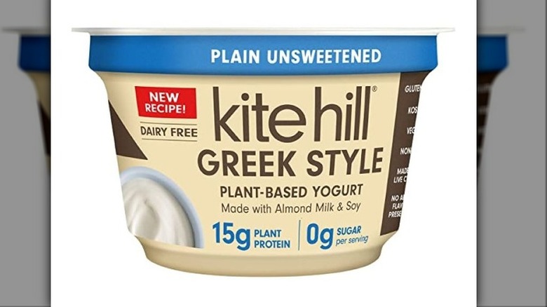 Kite Hill plant-based Greek yogurt has 0 grams of sugar and 6 grams of fat. It contains other valuable nutrients like iron, calcium, and potassium, as well. This Greek yogurt brand is gluten-free, kosher-certified, and made with non-GMO ingredients. It doesn't contain added sugars, flavors, or preservatives. Many consumers agree this Greek yogurt is a tasty treat. One person said, "This is the best vegan yogurt I've had. I love the taste, texture, and flavor—it's got some FUNK."