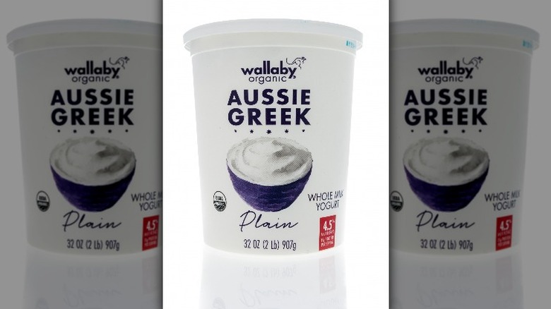 Wallaby organic is one of the brands under Danone North America and has existed for over 20 years. This brand's Aussie-inspired Greek-style yogurt comes in whole milk, low-fat, non-fat, and no-sugar-added varieties. The low-fat Greek yogurt from Wallaby organic provides 16 grams of healthy protein per serving, while other flavors, such as strawberry, blueberry, and vanilla bean, range from 11 to 15 grams. All Greek yogurts from this brand are kosher, organic, and gluten-free.