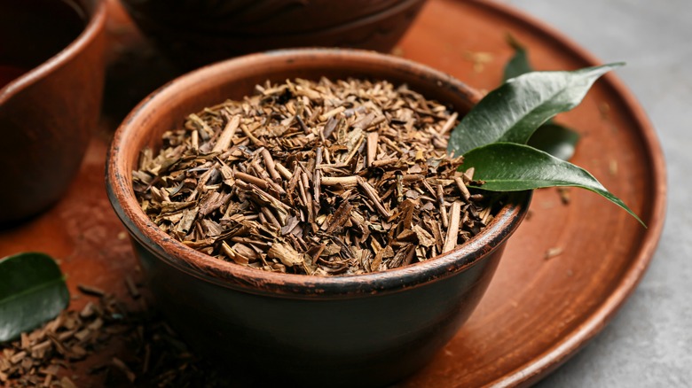 In an interview with Food and Wine, Jue describes hōjicha as "potent yet approachable," making it a perfect green tea to introduce to coffee and black tea drinkers. Typical brewing instructions for hōjicha will call for the water to be boiled for a minute, but Jue says that can create a burnt flavor she finds undesirable. Instead, she suggests brewing for one minute at a lower temperature, between 175-180 F. This advice is especially good when brewing first-harvest hōjicha (tea crafted from the leaves at the start of spring harvest), which tends to have a stronger aroma and fewer tannins.
