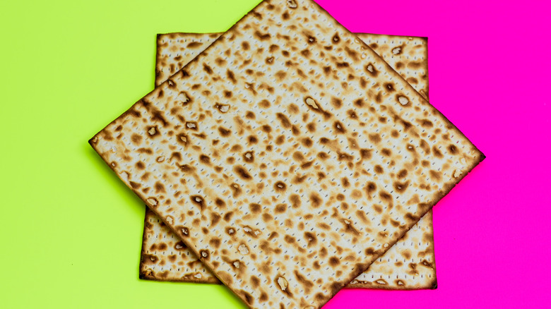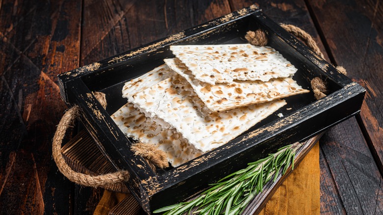 During the Passover Seder, you also eat matzo. It is an unleavened type of bread eaten during Passover to symbolize how, while escaping from slavery, Jews had to leave so quickly that they didn't have time for their bread to rise. It takes the place of chametz foods which can't be eaten during the holiday.