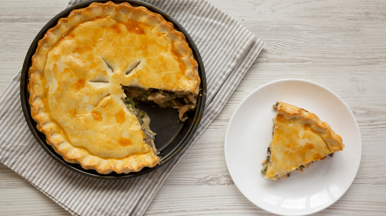 If dishes are your biggest concern, another hardy option is the rotisserie chicken pot pie. These massive savory pies come in their own oven-ready tray, meaning that they're ready to go right from the store to your oven without adding an extra dish.