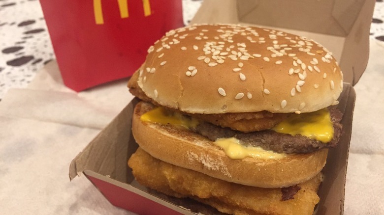 There is a long list of McDonald's secret menu items online and like a majority of them, this one requires some assembly. Making a Land, Sea, and Air Burger out of three different sandwiches will leave you with a fair amount of wasted bun that is just going to go straight into the trash. This is all to say if you are already getting each of these individual items and constructing them yourself, it's going to be better just to eat them separately and actually enjoy your calories.