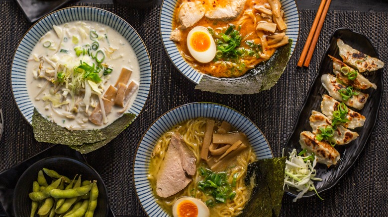 To make ramen for a weeknight dinner, you can start out with some canned broth and a pack of instant noodles. Heat the two items up together so that they cook quickly and then feel free to add whatever ingredients you wish to the pot. In terms of using leftovers, definitely consider adding any kind of dark poultry meat to your ramen. The scraps of meat that you'll commonly find on a turkey's wing or a chicken drumstick are rich in flavor and will pair wonderfully with this soup. To give this combo a try, you can prepare a batch of this chicken thigh ramen.