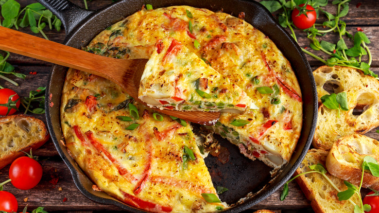 Cookbook author Lindsay-Jean Hard may be a whiz in the kitchen, but she still understands that not everybody has a ton of time to make a gourmet meal after work. Thankfully, as she revealed in a conversation with NBC, the culinary professional is ready to offer us a solution: Frittatas. According to Hard, frittatas are relatively easy to whip up since they are crustless and don't require any specific ingredients beyond eggs. As she told NBC, all you have to do to make a good frittata is combine some ingredients and then throw them into the oven to bake.