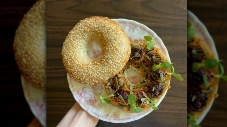 While you can certainly top your sweet potato bagel with plain cream cheese to keep the flavors pure, adding a few spices to the mix really elevate it. Sprinkle cinnamon on the bagel, whip it into your cream cheese before spreading, or take the easy route and simply buy cinnamon cream cheese ready to go. For something truly unique, grab a jar of marshmallow fluff to spread on your bagel, or top it with marshmallows and pop it under the broiler for a minute to make them nice and toasty.