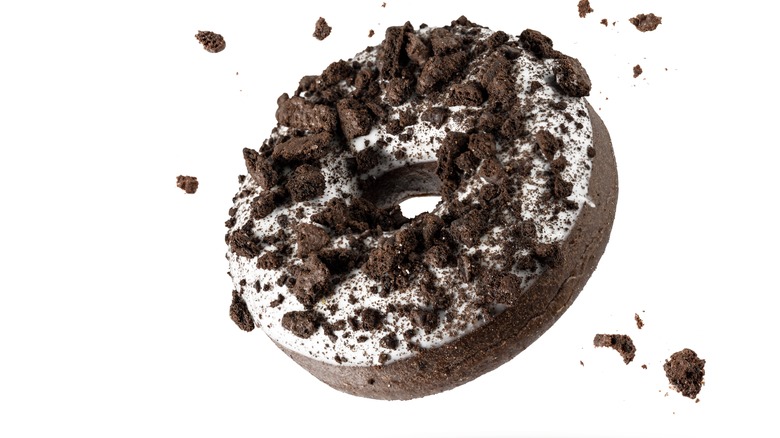 Oreo bagels typically have crushed cookies included in the bagel itself, but the best part is on top. Here, you'll find the white creme — some would say the best part — of the Oreo in glaze form spread over the bagel. Then crumbled Oreos are sprinkled on top, which provides the perfect crunchy balance to the soft and chewy bagel.