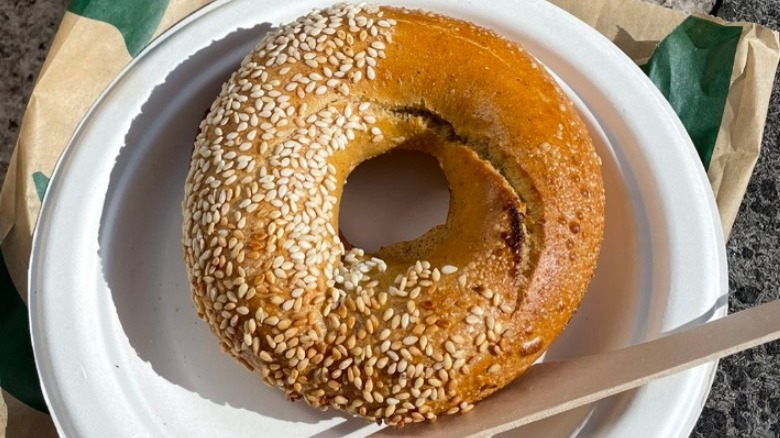 While you can find this variety in bakeries, Trader Joe's also offers a pumpkin bagel that keeps customers coming back for more. One reviewer said, "Really good! [...] Not too sweet and not too spicy. It's just right." Another commenter noted that they, "...smear them with the pumpkin cream cheese." Additionally, Thomas offers a seasonal pumpkin bagel. When reviewing it, one customer gave them four stars and noted, "Some of my favorite."