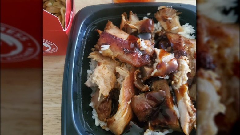 Aside from Orange Chicken, one of the more universally beloved entrees at Panda Express has got to be the Grilled Teriyaki Chicken. Teriyaki sauce is a popular crowd-pleasing condiment, and customers love the fact that the chicken is hand-sliced to order –- so you know it is ultra-fresh. In fact, Panda Express notes that the availability of the grilled chicken might vary depending on your location, so if you know you want it, be sure to visit at the start of the lunch or dinner rush.