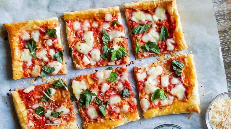 But the beauty of puff pastry is that it can be used in a myriad of ways, both sweet and savory — it's the gift that keeps on giving, remember? So let's make sure this one-sheet-wonder doesn't ever get forgotten again. Next time you find yourself with leftover puff pastry, we've got one word for you: pizza.