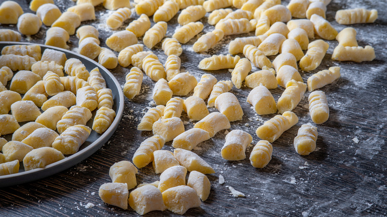 Gnocchi is one of many national treasures of Italy. Ricotta, pumpkin, spinach, mushroom, cauliflower, parmesan — you name it, gnocchi's got it. It can also be incorporated into various meals, such as soup and pasta, or eaten as a stand-alone snack with a dipping sauce. Whatever the occasion, there's bound to be gnocchi there, and it's surprisingly easy to make. But creating and rolling gnocchi can take some time, especially if you want it to appear straight from a five-star restaurant. Luckily, there are convenient, low-cost options, such as shelf-stable and frozen gnocchi. It may just be hard to find a specific type.