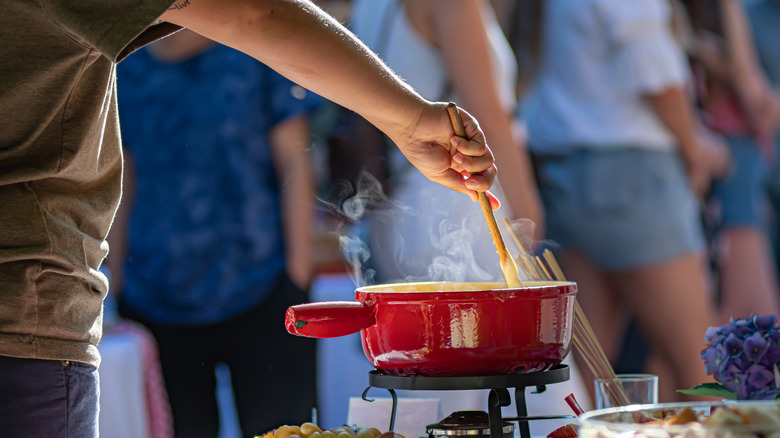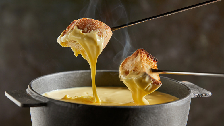 Cheese fondue has a long and serious history as a food tradition — it is not just a dinner party cliché. One of the first written records of the dish is thousands of years old, appearing in Homer's "The Iliad," one of the most significant literary works in history. Hundreds of years ago, fondue was even a staple of peasants living in Switzerland. In addition to being historic, fondue has a long list of attributes. It is simple, communal, and indulgent. However, there is one distinct issue with the dish: etiquette.