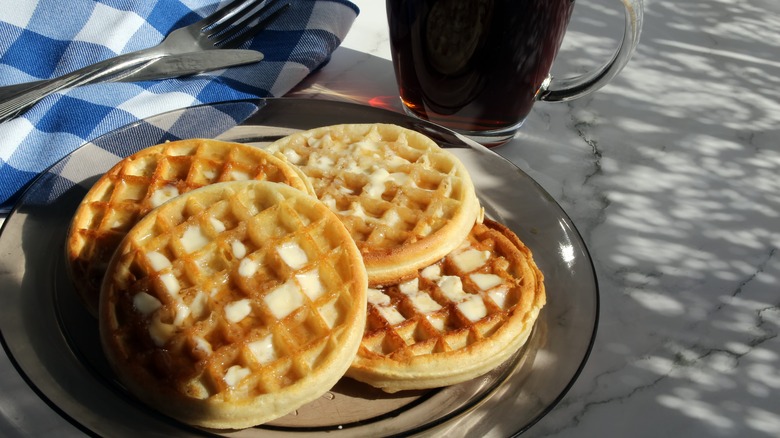 Instead of having a traditional rounded edge like most waffles, these liège-style waffles have a raw edge. According to the Belgium Kitchen, liège-style waffles originate from Belgium but luckily, Eggo has made this treat easier for the average person to get their hands on. Curious about what makes them different from your average waffle? The brioche dough and the pearl sugar combine to give this waffle a spongy mouthfeel.