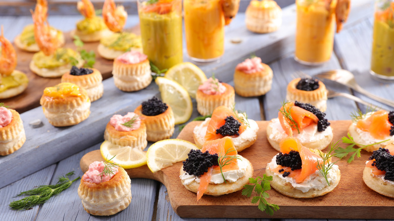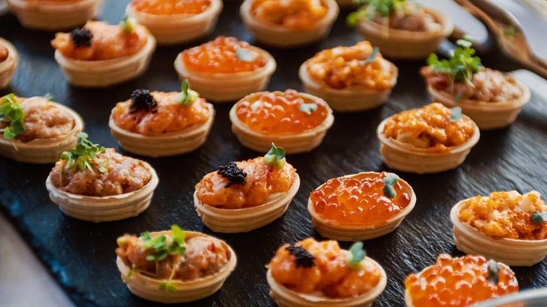 For less fussy affairs, there should be no need to hire a crew that's donning starchy dress shirts and bow ties. But that doesn't mean you should forego passed appetizers — a well-planned and executed amuse-bouche can add an impressive touch of sophistication or creativity to any event. When planning a gathering, it's always worth taking in the cost-benefit analysis, and passed appetizers are no exception. As you contemplate the menu, consider how well the app will stand the test of time — hot and crispy bites are most vulnerable to getting soggy unless eaten immediately. And, while pricier items might taste delicious, they can be a pain to transport and keep fresh for your guests. Some appetizers check all the boxes — but before we get to the good stuff, let's start with our least favorites of the bunch.