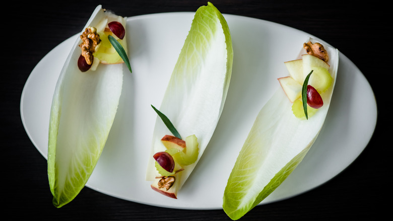 Stuffed endives also get bonus points for their elegant presentation — the white and chartreuse boats with delicate drops of colorful fillings can look quite striking, and immediately signal that this is a fancy affair. It's also a little-to-no napkin situation if constraint is exercised when it comes to the amount of stuffing.