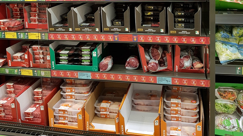 There is one other important thing to remember before your next shopping trip if you're planning to buy meat at Aldi. Remember, at this grocery store, the customer is responsible for bagging their own items. After the cashiers scan something, they just put it right back into your cart, wherever it lands or will fit. If you're buying meat, this means that it could end up tossed right next to your fresh produce, on top of your baby food, or somewhere else that you likely don't want it to be.