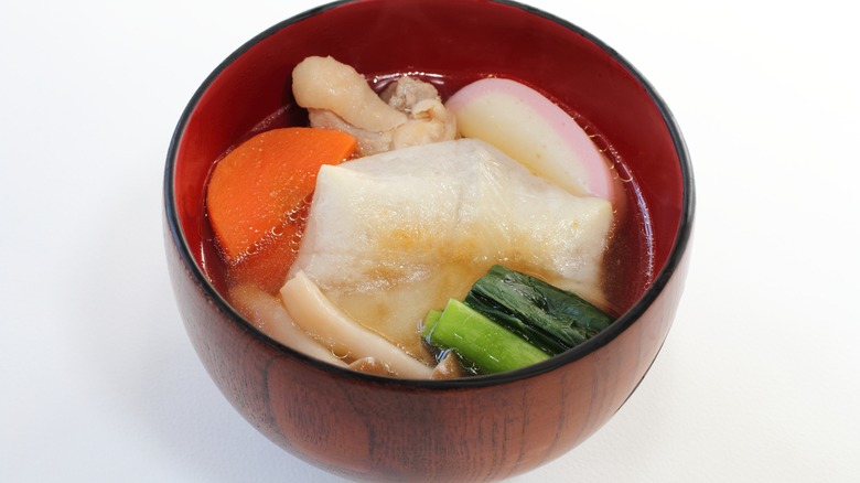 During New Year celebrations, it is traditional to consume a type of mochi soup called ozoni. Celebrants consume this on New Year's Day, in the morning. The name of this dish essentially means "mixed bowl" in English. It brings together vegetables, miso, and mochi to create a light yet flavorful soup. The recipe for making ozoni varies substantially within Japan. Depending on what region you are in, your ozoni could contain seafood, red beans, radishes, or even fish cakes.