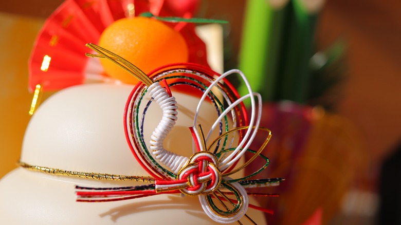 For many people in Japan, kagami mochis are considered to be hugely symbolic. Their structure — which stacks a smaller mochi above a larger one — represents the intersection of the new year and the old one. In another interpretation, these two spheres can also symbolize the moon and the sun. These planets are called yin and yang. The orange represents the continuation of time. Combined, these elements make kagami mochi a symbol of good fortune for the new year.
