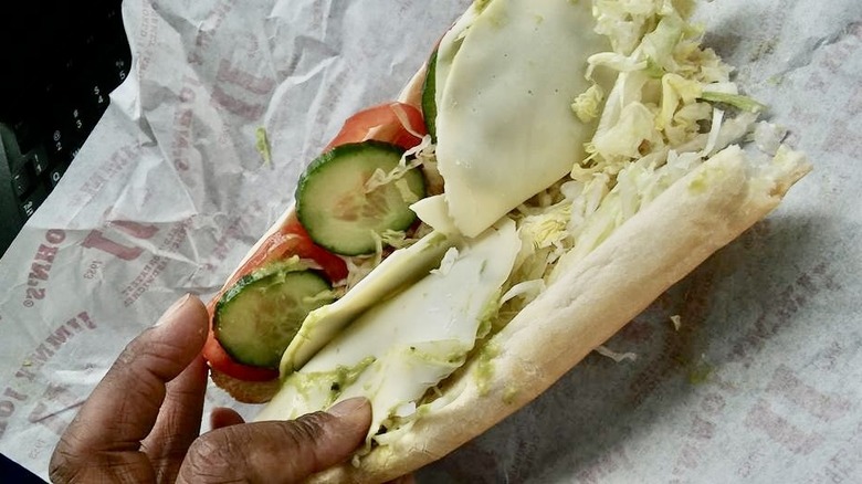 This salty Italian-inspired sandwich is simple, and packs a whole lot of flavor with pieces of provolone, salami, and capocollo. The Slim 5 menu item (like all "Slim" sandwich options) doesn't come with extra veggies, and you might want to get some mustard and mayo packets if you ask for it.