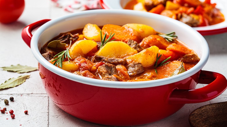 Slow-cooked stew might not be your idea of a party food, but Anthony Bourdain thought boeuf bourguignon was an ideal way to serve a crowd of imbibers. By all accounts, Julia Child would likely have agreed. When made ahead, the classic French dish, which stars beef simmered in red wine for hours until it's impossibly tender and rich, eliminates pretty much all cooking responsibilities on the day of a party.
