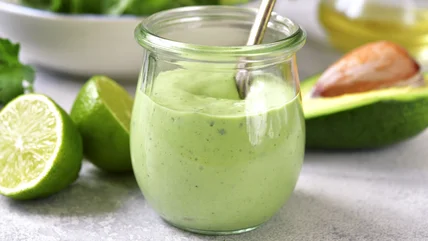 The powers of avocados alone are astronomical. Lovers of the popular fruit already know it's ripe with many health thanks tohigh levels of vitamins K & E, antioxidants, and fiber — not to mention boasting an appearance on the Clean 15 list almost every single year. Avocado dressings not only contain these many health advantages, but they're also super versatile, a welcome addition to anything that needs a little punch of fresh flavors, from scrambled eggs to protein bowls. The dressing is also a healthy alternative to ranch dressings, which contain less healthful additions like mayonnaise — not to mention the artificial ingredients used in pre-bottled ranches. With all of an avocado dressing's charm, it's natural to want to hold onto the stuff for as long as possible. So if you're looking to maintain a vibrant avocado dressing's color and taste as it sits on the shelf, use more lime.