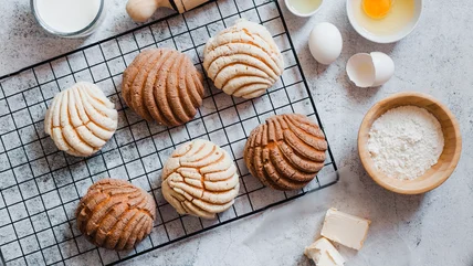 Mexico's national sweet bread, concha is a type of sweet roll topped with a cookie crust. Conchas — the Spanish word for shells — are named for their likeness to a seashell, taken from the iconic colorful stripes that rest on top of the bread. To make conchas, you'll need to brush up on bread-making basics, going a little further to get the streusel topping just right and working the dough to perfection. Unlike standard bread-making, the most crucial first step to achieving crispy, fluffy conchas is starting with an unfloured surface.