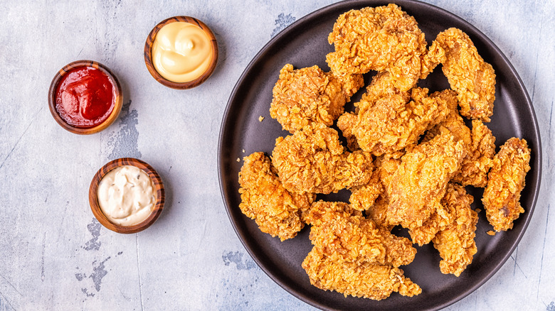 That's not the whole story, though. There are some people who do think flats are the easier ones to dip, but there's a better approach to getting your wing flat sauced. "Dip it meaty side down in some blue cheese that's been poured on to your plate (everyone knows you can't dip a flat into the blue cheese cup), and you have yourself the perfect ratio of skin to meat to sauce to blue cheese," Emily Kluckhohn Morrow, co-owner of Step Out Buffalo, shared with Thrillist. Pouring some of your dipping sauce onto your plate is a great strategy to make the most of your flats. Next time you make a plate of wings, take a moment to appreciate the beauty that is the flat, with its tender meat and perfect surface area for sauce.