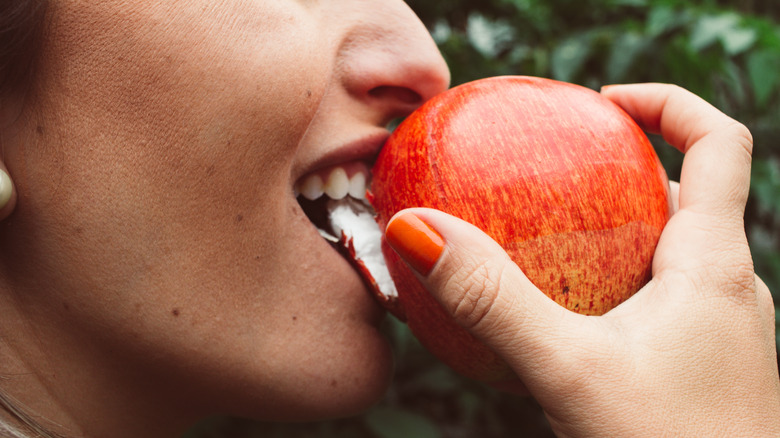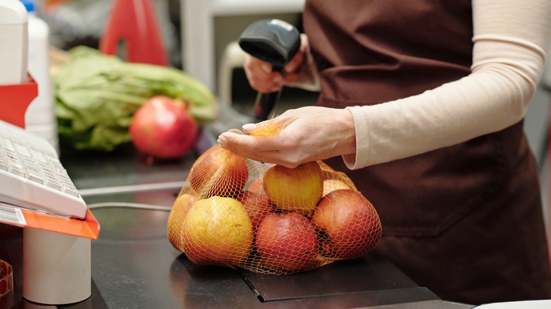 If you've ever wondered how cashiers know whether you're buying a bagful of Pink Lady apples or Honeycrisp apples without being apple experts, look no further than that tiny sticker. The sticker has a catchy name — it's called a "PLU sticker." That's short for "product look-up sticker," which hints at how it's used. Each sticker has a four- or five-digit code that corresponds to the type of fruit you're buying. When the cashier types in the code, they see the price of the apples you're buying. The length of the code depends on whether or not the fruit was grown organically. Fruit with a five-digit code is organically grown, while fruit with a four-digit code isn't, and the corresponding codes for organic fruits all begin with a "9." The codes originated in the 1980s and have since become universally used — mandarin oranges have the same PLU code in the United States that they do in Scotland. It's pretty cool that the sticker on your fruit actually means something, but is it edible?