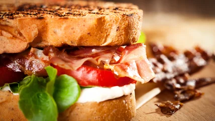 When it comes to a sandwich, so much of its goodness comes from how it's constructed. The bread must be firm enough to hold the fillings and mayo without falling apart due to moisture. The lettuce needs to be the right size for the bread. And the bacon has to be perfectly cooked to give a bit of savory smoke with every bite. If it's too thick or undercooked, you risk coming off the sandwich or shifting around while eating. There's nothing sadder than an eviscerated sandwich or the attempt to put it back together mid-bite. The coveted BLT experience is one where the mouthful has a little bit of everything, especially bacon. We will tell you how to get a perfect sandwich every time.