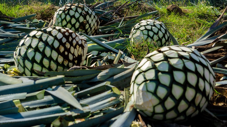 Tequila production begins with the blue agave plant. Seen in its full form, the plant stands out with long, spiky, blue-green leaves that protrude from the fruit at the center of the plant. While the plant starts small, at its full maturity the leaves can reach about eight feet long, with a final plant height of 10 feet. To make many tequilas, fully mature plants must be employed, and it takes about eight years for agave to reach full maturity, so it can be a lengthy process.