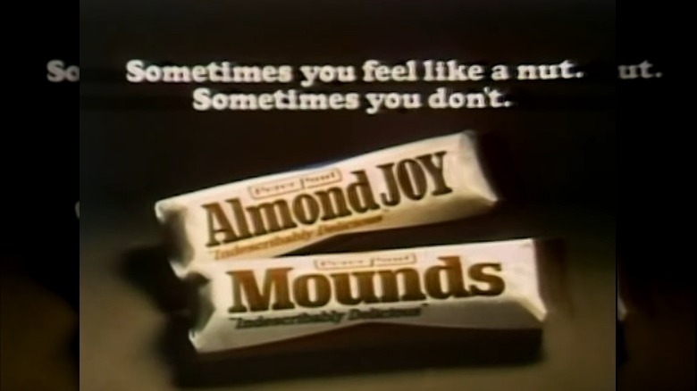 Nowadays the jingle is instrumental, but in commercials pre-dating 2010, the lyrics "Sometimes you feel like a nut, sometimes you don't" were also sung. In a throwback of sorts, Almond Joy and Mounds released a 2021 commercial featuring the full song, and judging by the comments on YouTube, the older slogan is much more iconic, at least among the candy brand's older fans.