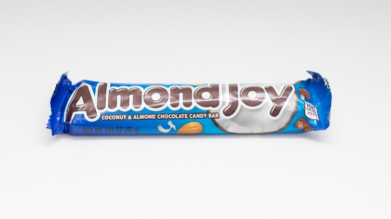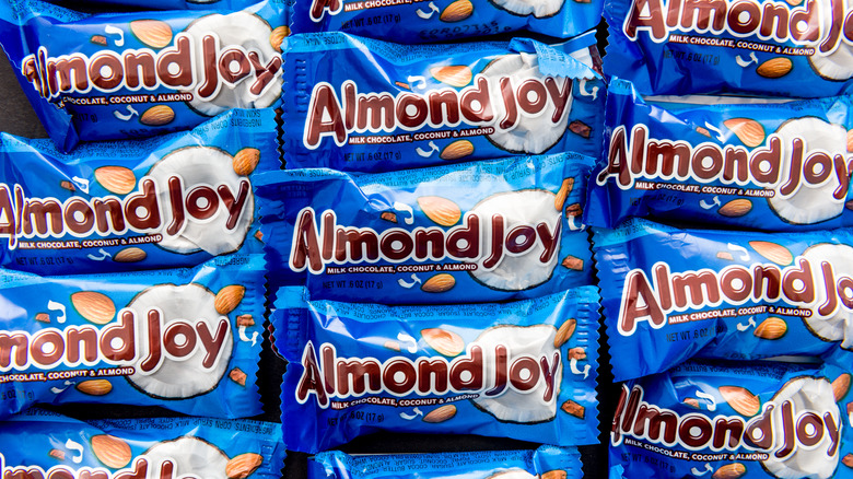 If a commercial comes up on TV and it involves a candy bar and a tropical island, you can quickly guess that it's an ad for Almond Joy or Mounds. Since 2010, the coconut-filled chocolate candy brand has leaned on the island vacation theme for advertising its products, with commercials featuring the tagline "Unwrap Paradise" and more recently, "Almond Joy is Tropi-Calling." In the background of these commercials you can also hear calypso music playing, but what some people fail to realize is that it's actually to the tune of Almond Joy's original slogan and jingle.
