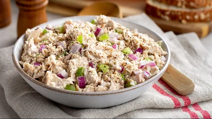 When you're in the mood for a real American lunch, you can always turn to a melty grilled cheese or a classic club sandwich to satisfy that craving, or you can stick with a traditional mainstay like tuna salad. It's a convenient meal to prepare last minute since you probably have a few cans of tuna taking up space in your pantry right now. Bread also isn't necessary when it comes to enjoying this protein-rich salad: crackers or just a fork do the trick without skimping in the satisfaction department.