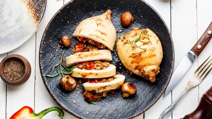 Perhaps some of this preference stems from the fact that cuttlefish have a slightly more complex flavor than squid do. While squid tend to have a softer, less intense taste, cuttlefish offer a deeper, milkier flavor that also contains walnut notes. This added oomph means that you can easily substitute squid for cuttlefish as a way to elevate your seafood recipes. For example, you can amp up this baby saffron squid recipe by switching out the squid for its more flavorful alternative. Here, the richness of the cuttlefish meat will blend perfectly with the acidic white wine and pungent garlic cloves to make a plate that is absolutely luscious.