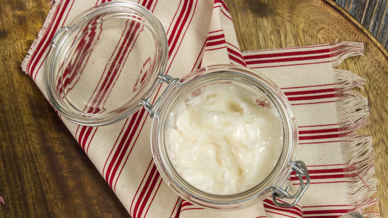 First and foremost, you should never dump that grease down your kitchen drain unless you're a big fan of calling a plumber for help. So, if not in your sink, where is it supposed to go, and what uses does it have once the pork and pancakes are plated? We have good news for you: Bacon grease is easy and safe to store and is the perfect secret weapon to use for several kitchen projects. It's not just for breakfast — it can improve your dinners and baked goods, too. So, grab a glass container while we get into a few things you should keep in mind before storing your bacon safely.